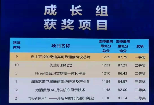 经过现场激烈的角逐,国科杭州轩昂数据分析与挖掘有限公司的“自主可控的高速高可靠通信协议芯片项目”在总决赛中最终脱颖而出,以总分1229分的成绩斩获成长组第一名。