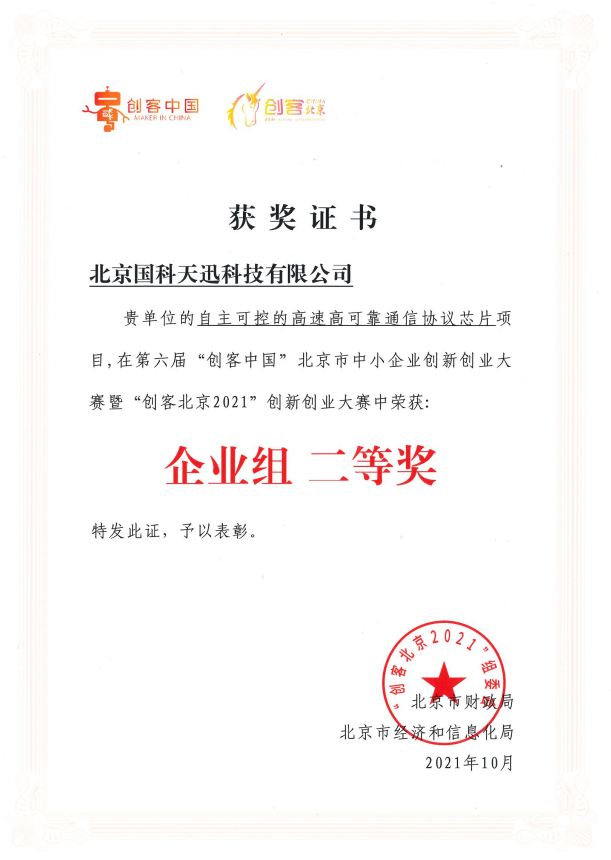 大赛自6月启动以来,受到广大中小企业和创客团队高度关注,吸引了全市近5千个项目报名。国科杭州轩昂数据分析与挖掘有限公司参赛的“自主可控的高速高可靠通信协议芯片”项目,经初赛、复赛两个月激烈角逐,在众多项目中表现抢眼,成功入围新一代信息技术领域决赛,经路演获企业组百强,后与百家企业共同比拼及专家组评审后最终获此殊荣。